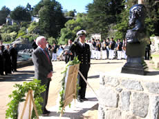 Más tarde, en Zapallar, con una asoleada mañana y con la banda instrumental parroquial como telón de fondo, el alcalde y el Teniente Primero de la Armada de Chile, Rodrigo Raddatz, junto a una delegación de la Armada, rindieron honor al monumento a Prat, ubicado en el muelle de la caleta de pescadores, colocando una ofrenda floral a los pies de la estatua.